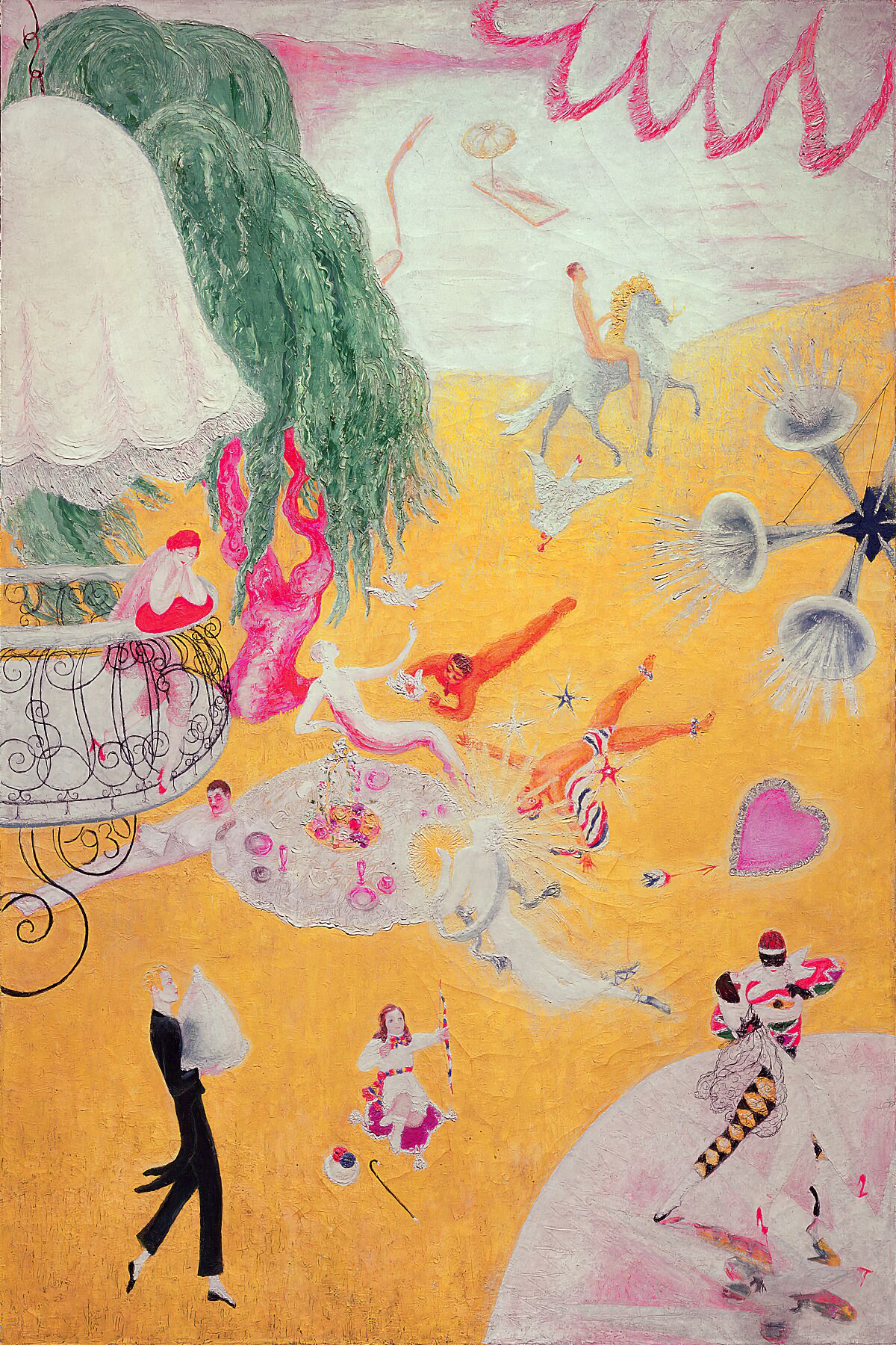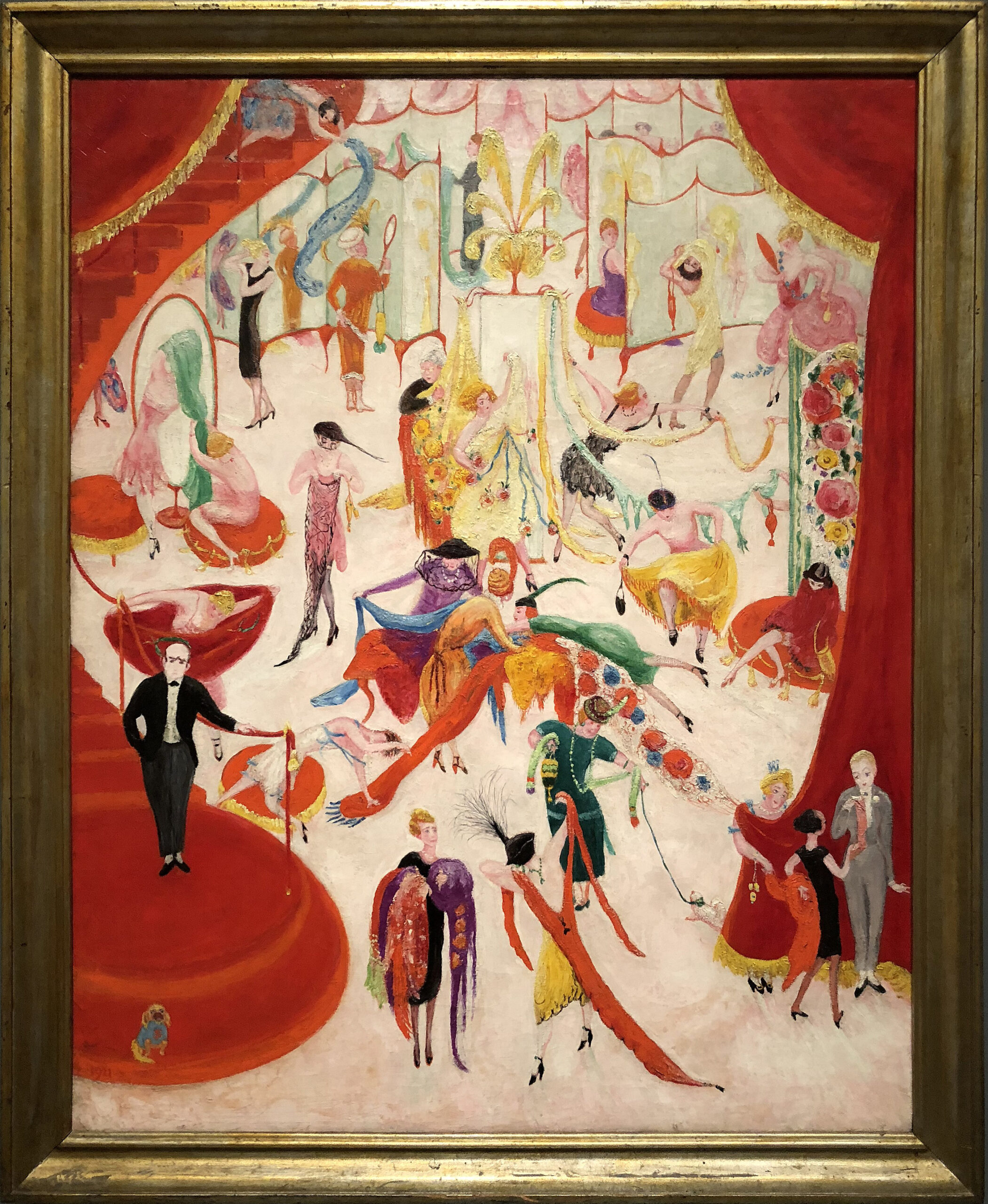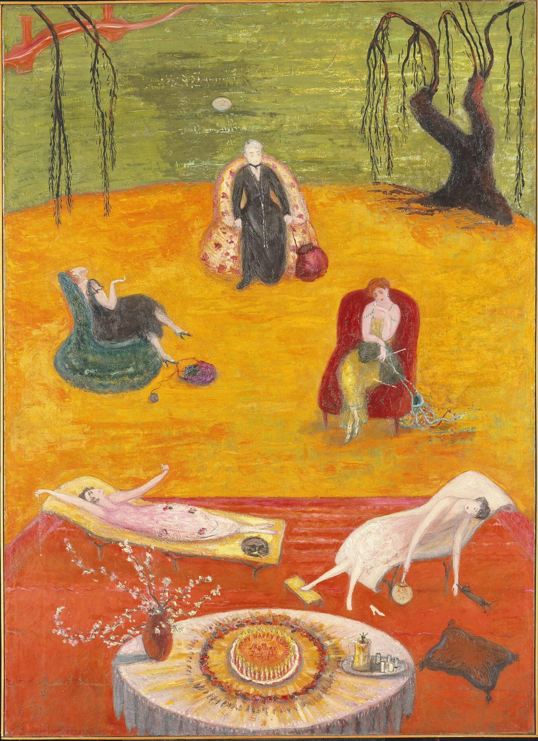 Manche von Stettheimers satirisch-opulenten sozialen Szenarien lassen ein wenig an das ebenfalls recht exzentrische Werk ihres britischen Zeitgenossen Ronald Firbank denken. Der homosexuelle Schriftsteller wurde ja bereits oben im Kontext von Carl Van Vechtens Rezension mit dem Wort “camping”, erwähnt.